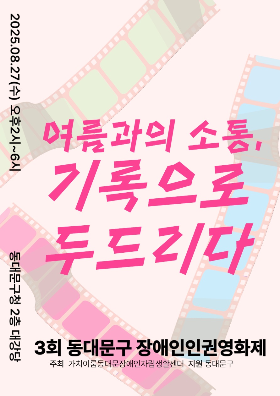 가치이룸동대문장애인자립생활센터(이하 가치이룸센터)는 오는 8월 27일(수) 오후 2시부터 6시까지 동대문구청 2층 대강당에서 제3회 동대문구 장애인 인권영화제를 개최한다고 밝혔다..