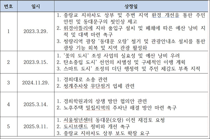 앞으로도 주민들과 함께 현장을 살피며 문제를 해결해 회기동·휘경동이 동대문구의 미래 경쟁력을 이끄는 지역으로 성장하도록 책임 있게 노력하겠습니다.