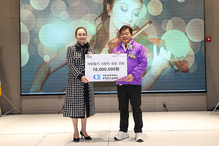 서울 동대문구는 지난 8일 열린 동대문구상공회 ‘최고경영자과정 24기 수료식 및 송년의 밤’ 행사에서 상공회(회장 이희순)로부터 이웃돕기 성금 1천만 원을 기탁받았다고 9일 밝혔다.